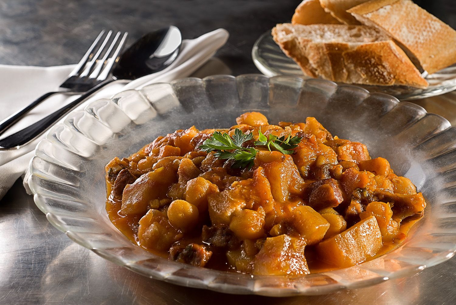 Los famosos platos de duralex sobre la barra de aluminio. Impresionante plato de callos.